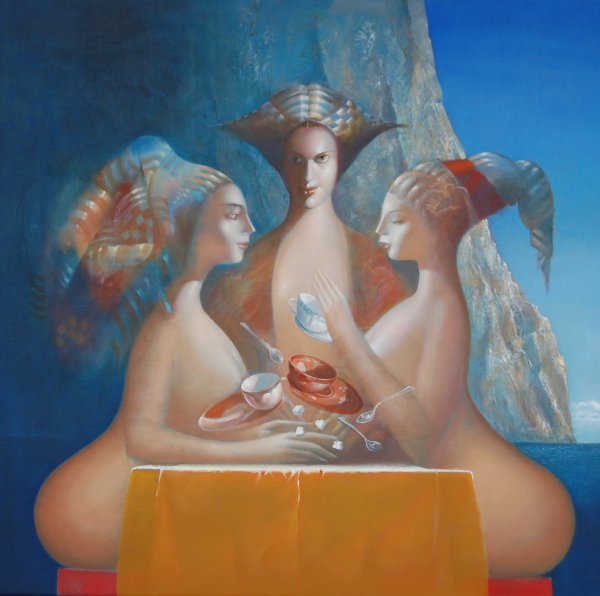 05. Drei Grazien Artist: Dimitri Vojnov Materials: Oil and Acrylic on Canvas Size: 110 x 140 cm Other details: _ |