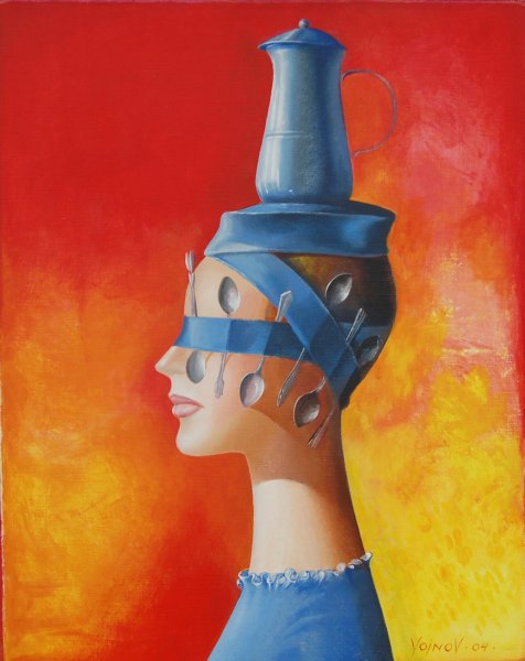 08. Kaffeezeit Artist: Dimitri Vojnov Materials: Oil and Acrylic on Canvas Size: 80 x 100 cm Other details: _ |