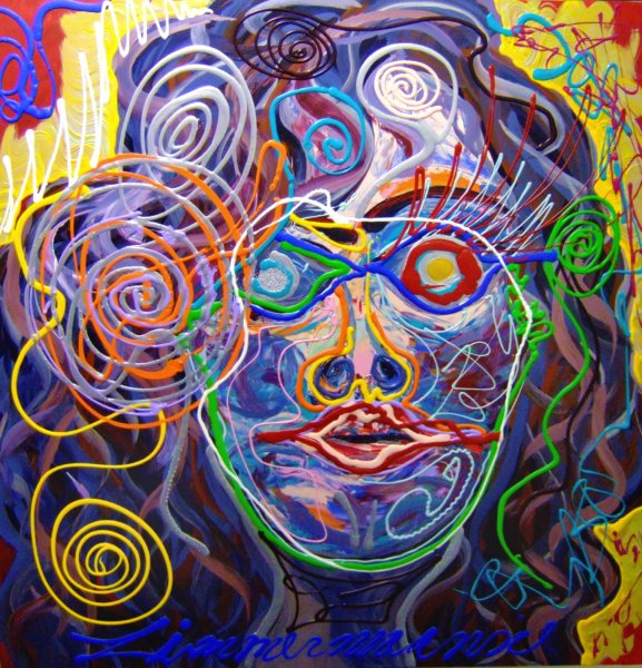 16. One Too Many Artist: Ronnie Zimmermann Materials: Acrylic on Canvas Size: 146 x 146 cm Other details: _ |